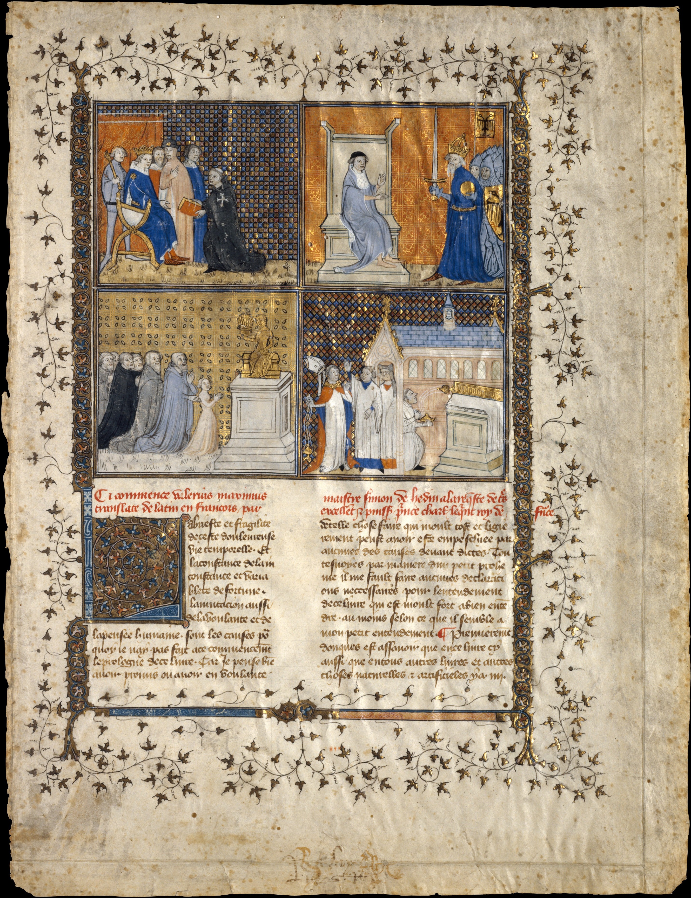Manuscript leaf - from the Medieval Art department. ca. 1380–90 Leaf from a Manuscript of Valerius Maximus, Workshop of Pierre Remiet. Metropolitan Museum of Art, New York, NY |